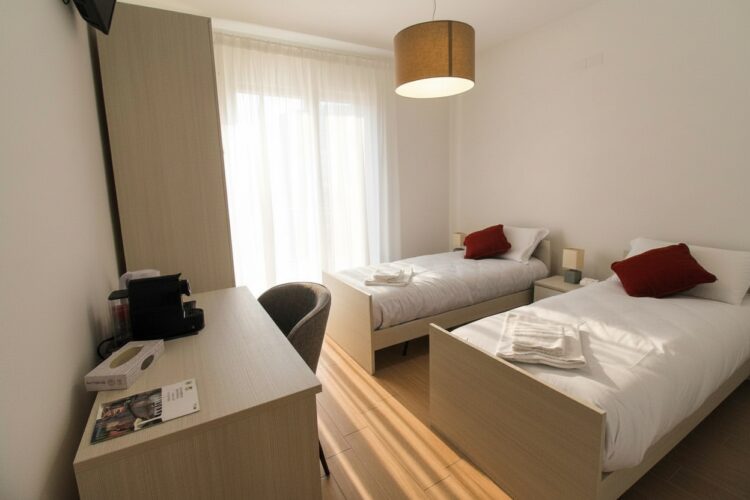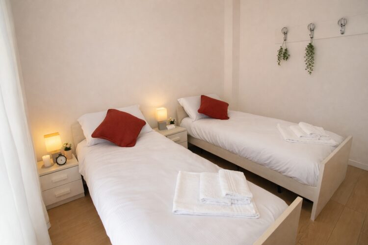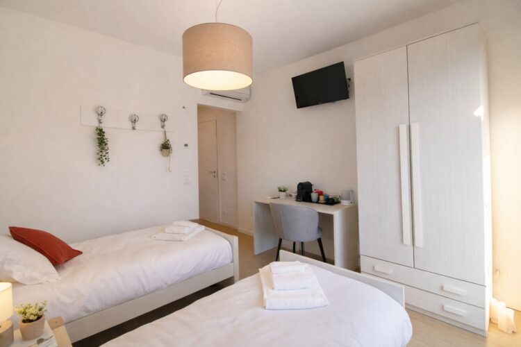 Unità luminosa per due ospiti, con due letti singoli, aria condizionata e tocchi di classe come asciugacapelli.