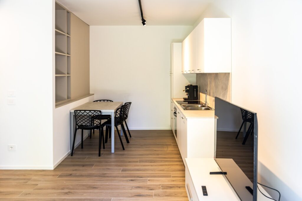 Modern, fully furnished apartments featuring a private garage and dedicated parking space. The first-floor units offer a comfortable liveable terrace, while the ground-floor units boast a private garden. Residence Fornaci – comfort and private parking near Treviso city centre and the airport, the ideal choice for those seeking both convenience and relaxation.
